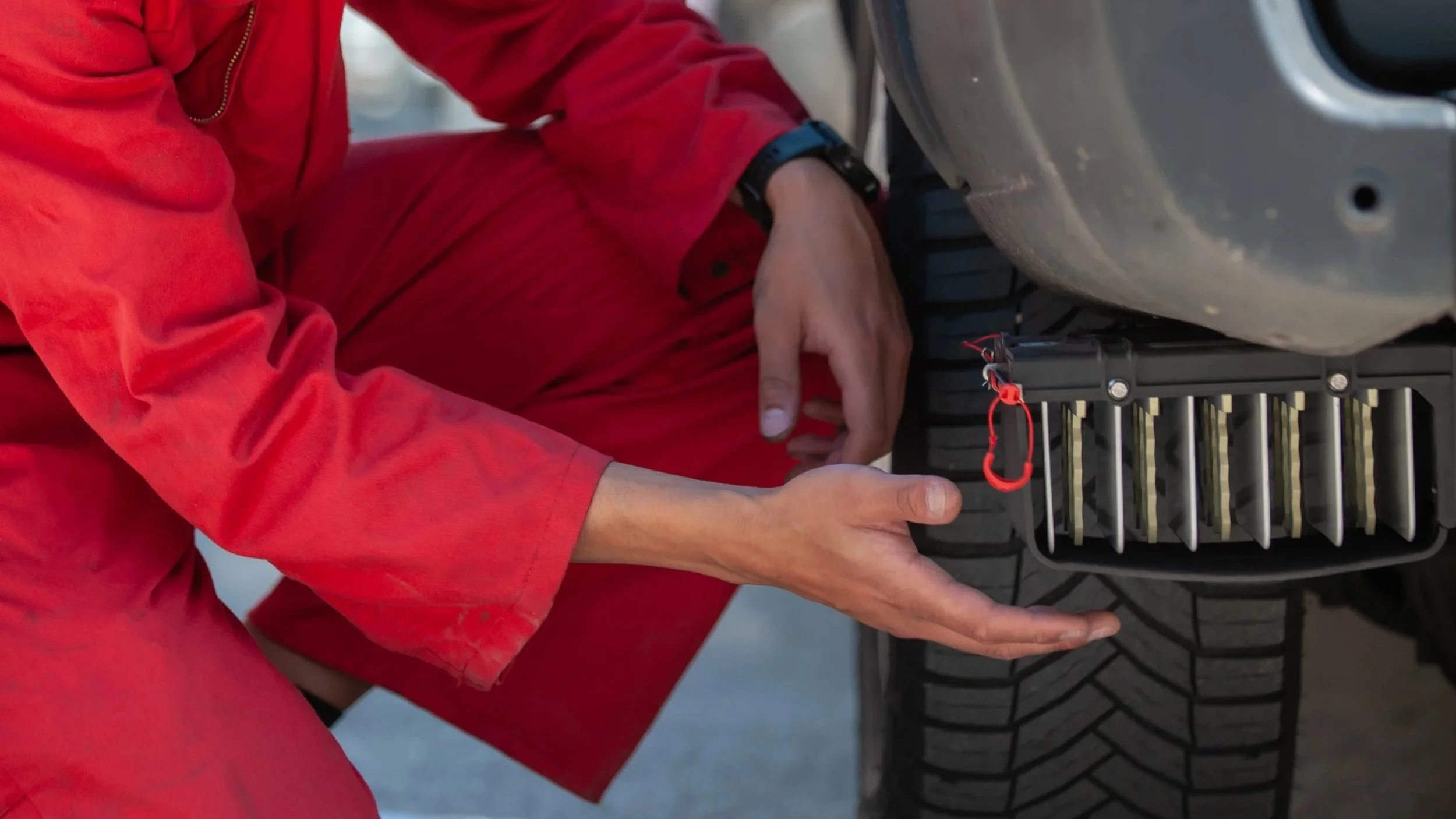 The Tyre Collective invented patented technology that can selectively capture tire microplastic particles as they are created. The device mounts behind the tire on the vehicle. Up to ~95% of the material it collects is tire wear. It targets capturing small particles which are the most harmful for our air and water.